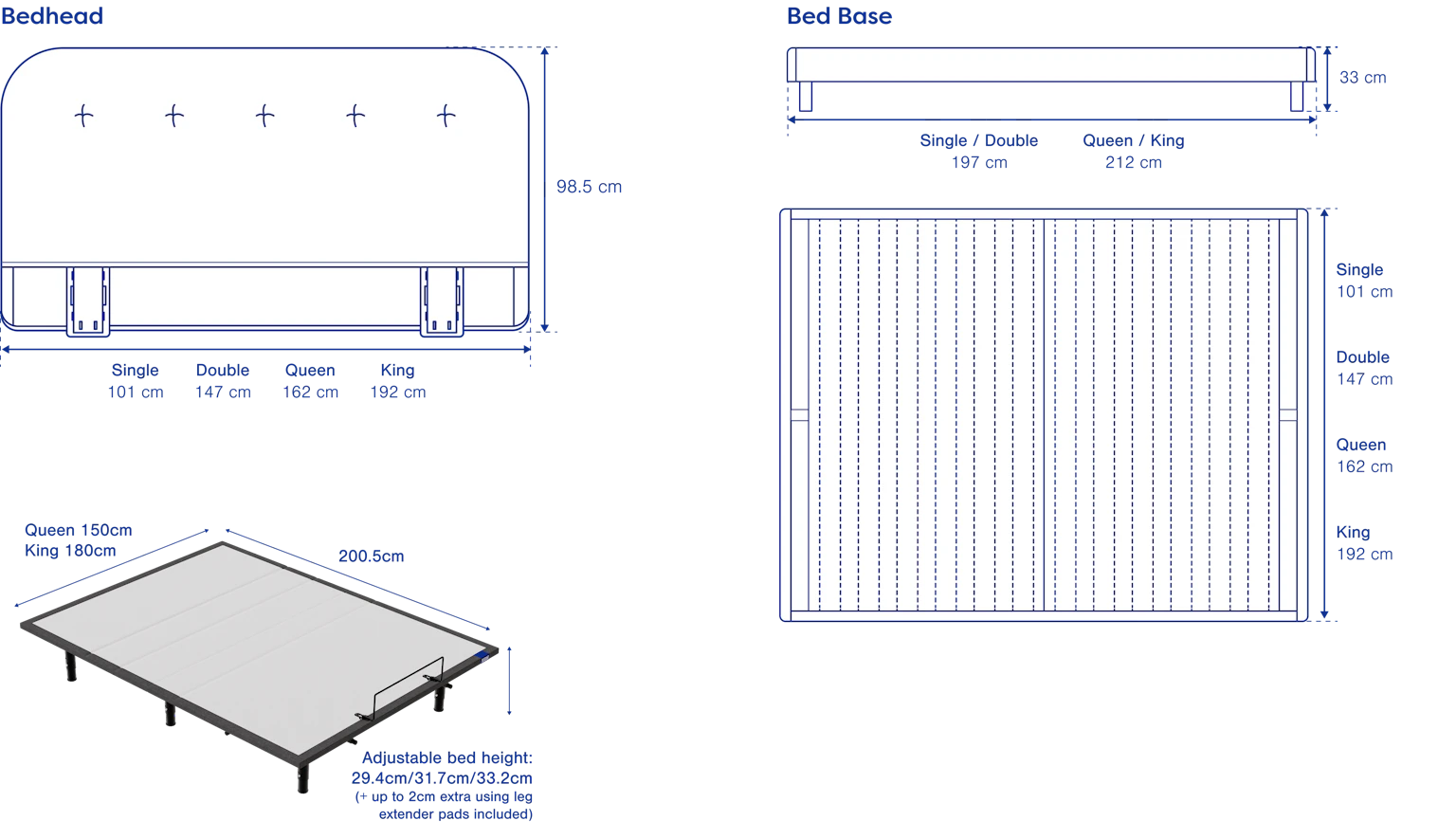 *Not compatible with Ecosa TrueFirm Mattress, Bonnel spring mattresses, or mattresses over 40cm in height. Before purchasing, confirm with your mattress brand if they are compatible with adjustable beds.
